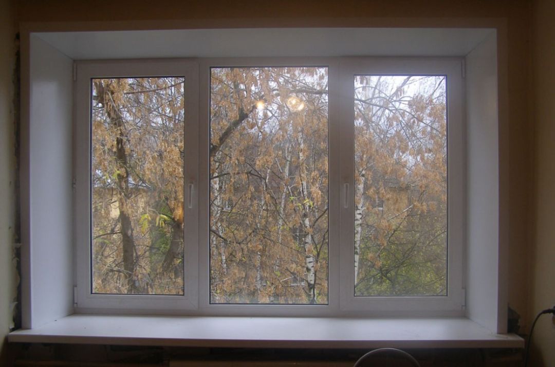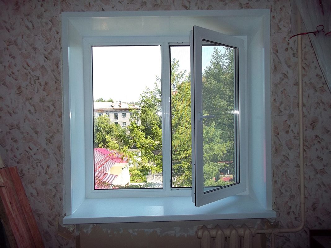 Вариант для небольшого оконного проема. Обычно створка открывается, но можно сделать и без такой возможности.